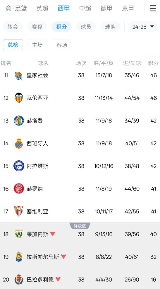 而在上赛季,塞维利亚情况则大不交流,整个赛季,他们10胜11平17负,最终拿到41分,仅以1分上风保级告捷。