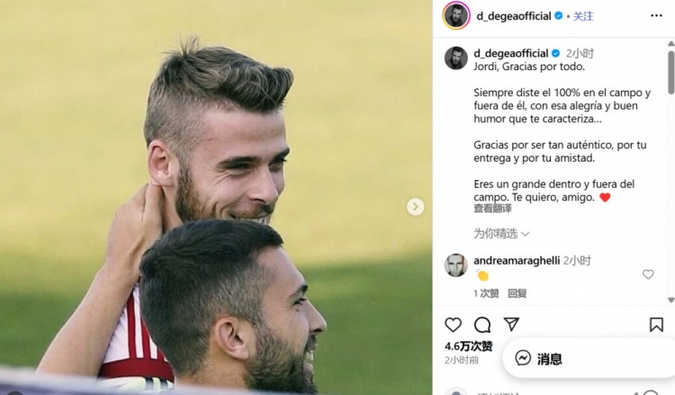 德赫亚请安阿尔巴:你在场上和场下王人是很棒的东说念主,我爱你,一又友