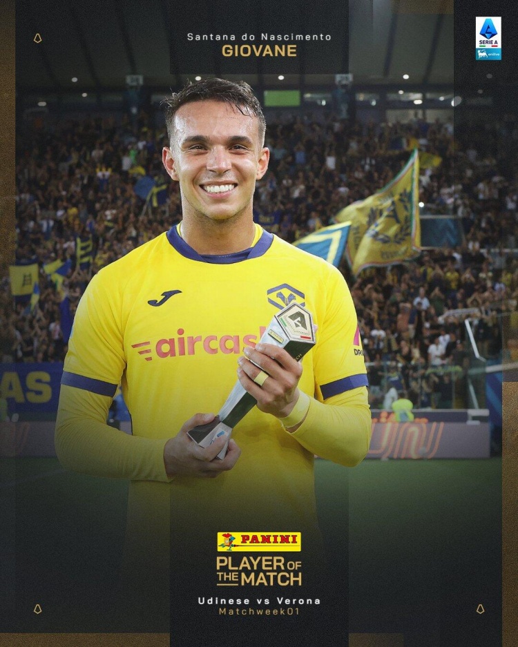 吉奥瓦尼-桑塔纳成就于2003年11月24日,现年21岁,巴西前卫,本年夏天从科林蒂安加盟维罗纳,德回身价400万欧。
