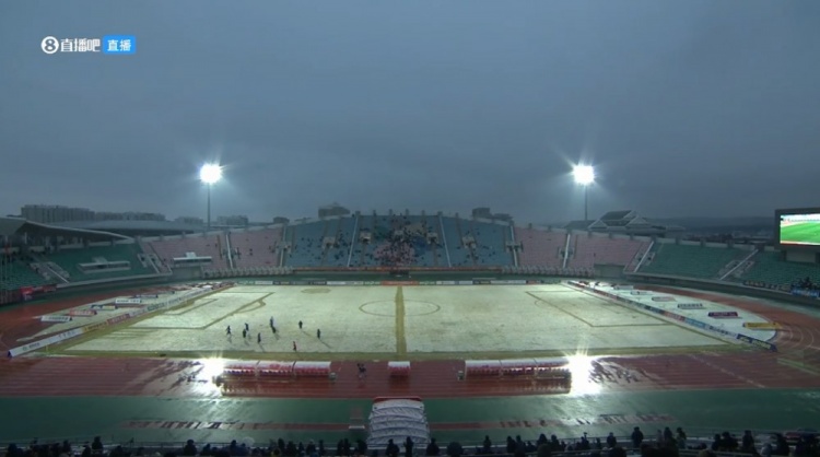 本场比赛,延边龙鼎主场积雪严重,草坪齐被染成了白色。