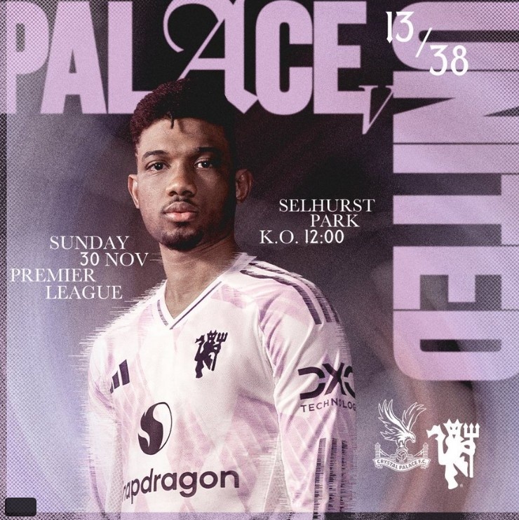 力图三分!曼联官推晒对阵水晶宫海报,阿玛德单东谈主出镜