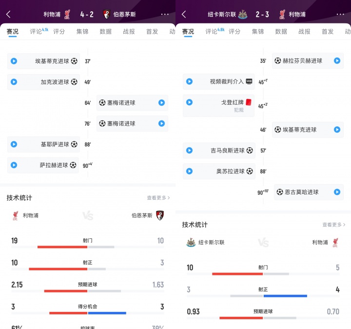 英超揭幕战,利物浦主场4-2伯恩茅斯,赤军2球跳跃后连丢2球,最终基耶萨88分钟破门、萨拉赫94分钟破门带走得手。