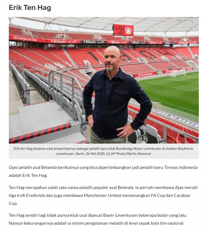 该媒体就此对新任印尼主帅进行了瞻望:“哪些荷兰籍教训有后劲成为印尼国度队的新任主教训呢?以下是咱们的详备分析。”