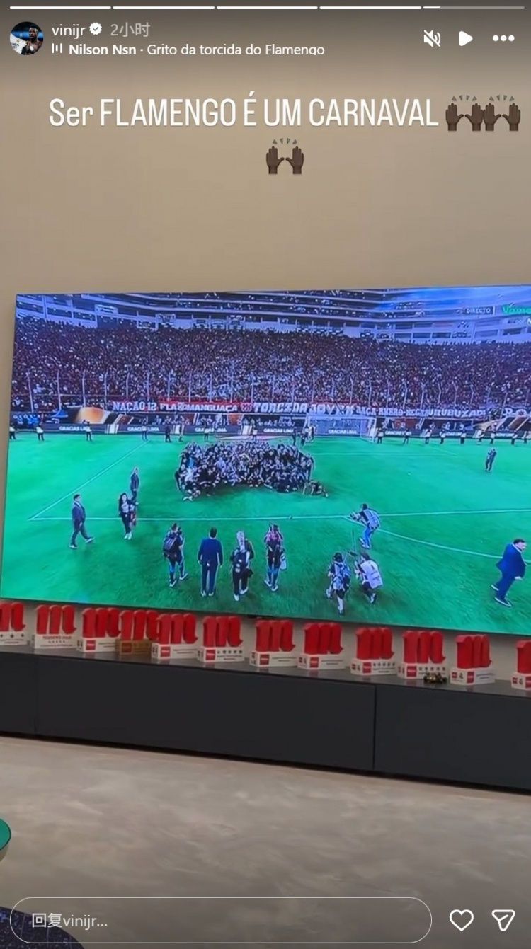 维尼修斯也在社媒晒出我方在家中电视不雅看比赛直播,以及球队庆祝夺冠的相片,配文写说念:“行动弗拉门戈球迷,这就像是一场嘉年华!”
