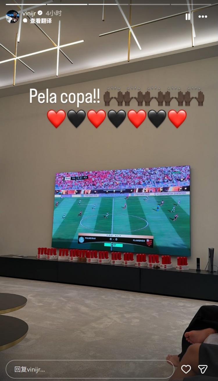 心系老东家弗拉门戈!维尼修斯晒家中不雅看摆脱者杯决赛直播相片