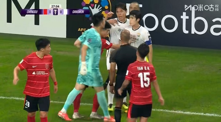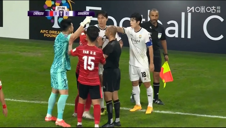 09月30日讯 蓉城vs江原第27分钟,古尔芬克尔突围后遭江原球员金谈现“掏裆”,前者倒霉倒地,两边也就此产生小界限突破。