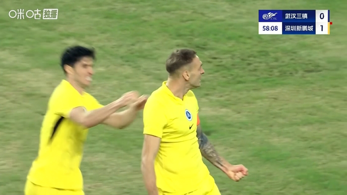 10月24日讯 中超第28轮,武汉三镇vs深圳新鹏城。比赛第58分钟,杜加利奇包抄破门,10东说念主新鹏城客场2-0跳跃三镇!VAR长技能核实后认定进球有用。