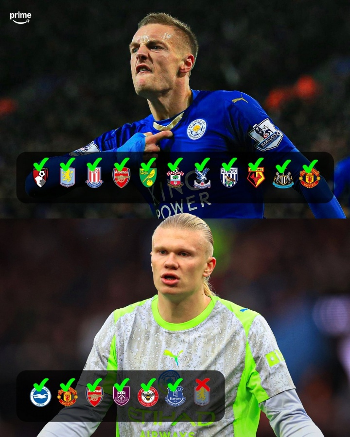 2015年8月29日-11月28日历间,瓦尔迪在英超通顺11轮进球,于今依然英超联赛最长的通顺进球场次记录。