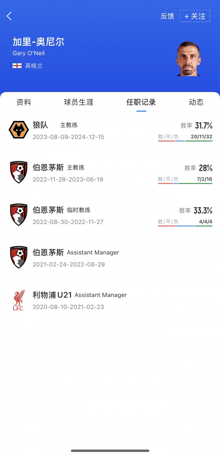 加里·奥尼尔曾于2023年8月-2024年12月持教狼队,佩雷拉恰是接替奥尼尔的帅位,并得胜带队保级。