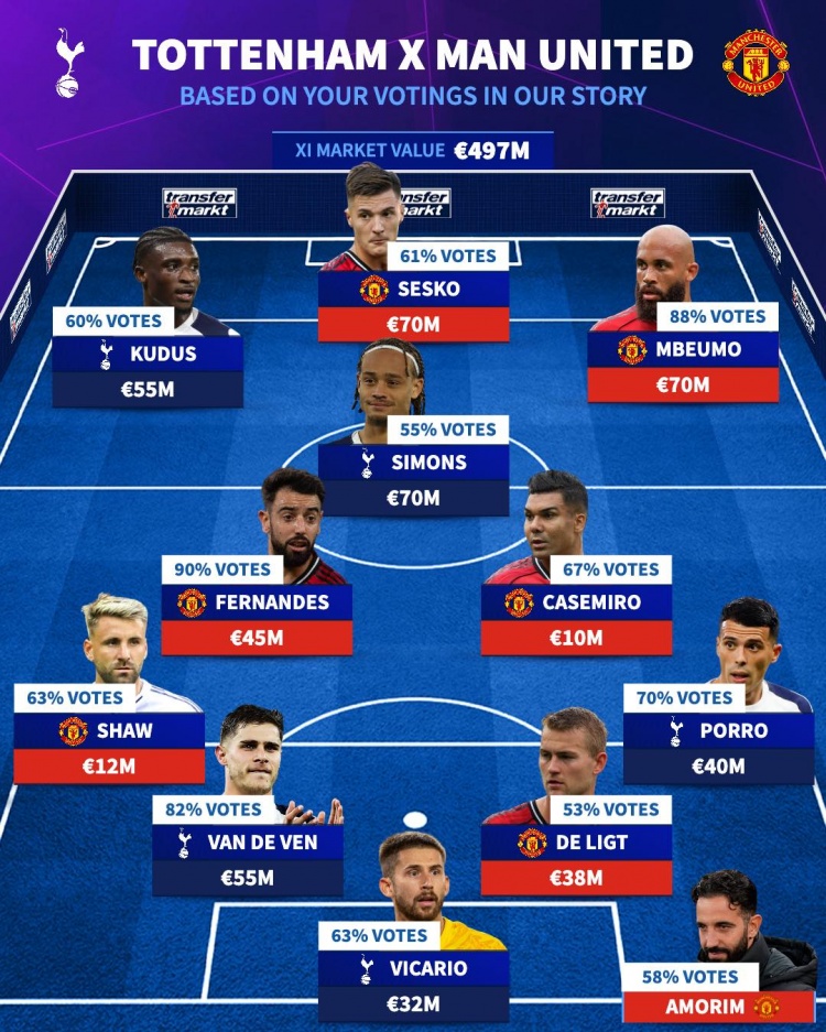 德转票选热刺+曼联威望:B费、舍什科、西蒙斯在列,主帅阿莫林