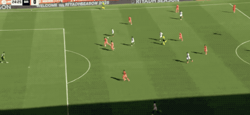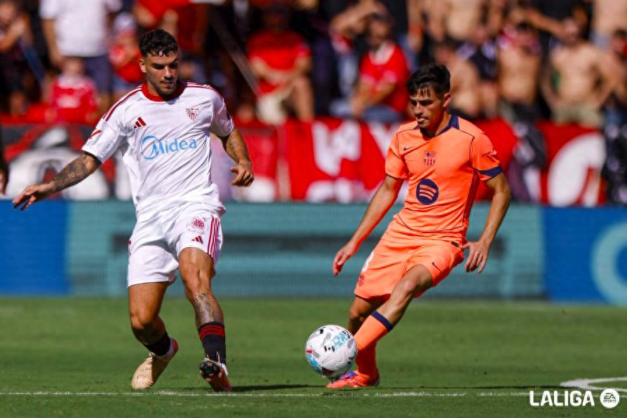 第22分钟,塞维利亚在巴萨半场集结传球,门迪后点的射门略略偏出。