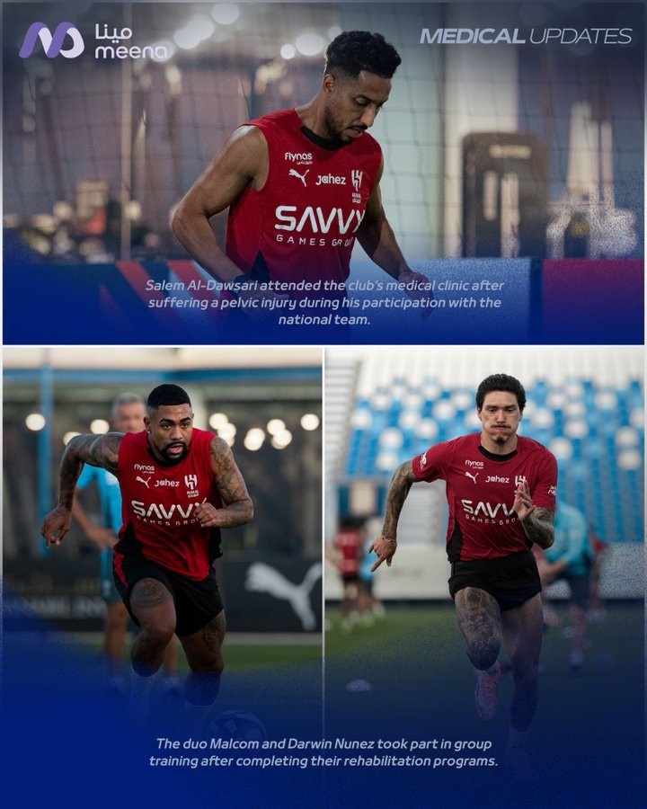 努涅斯和马尔科姆照旧康复,至本日厚爱总结干预利雅得月牙的合练