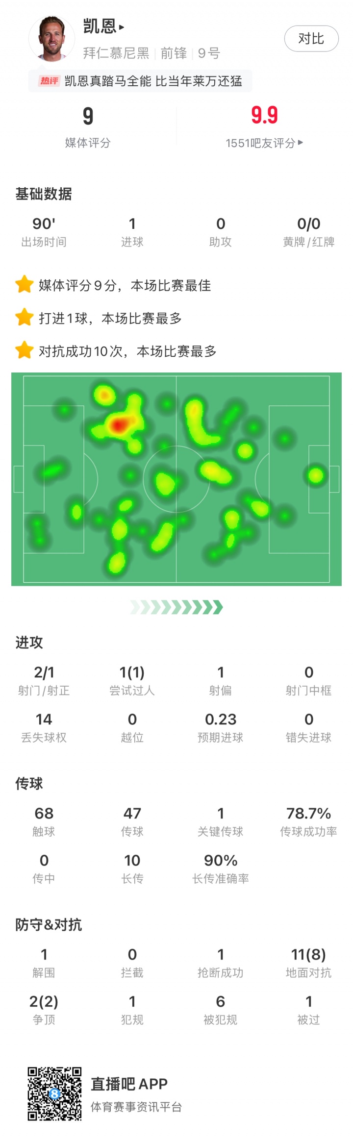 32岁德甲carry!凯恩全方式集:能传能射、滑铲突围 热区跑遍全场