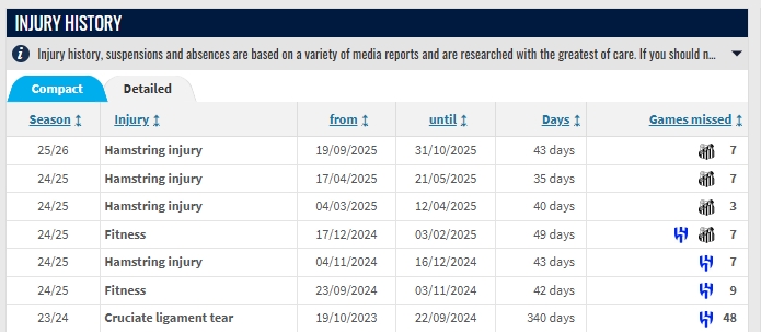 据德转数据统计,内马尔2年来伤缺天数共计592天,缺席88场比赛。