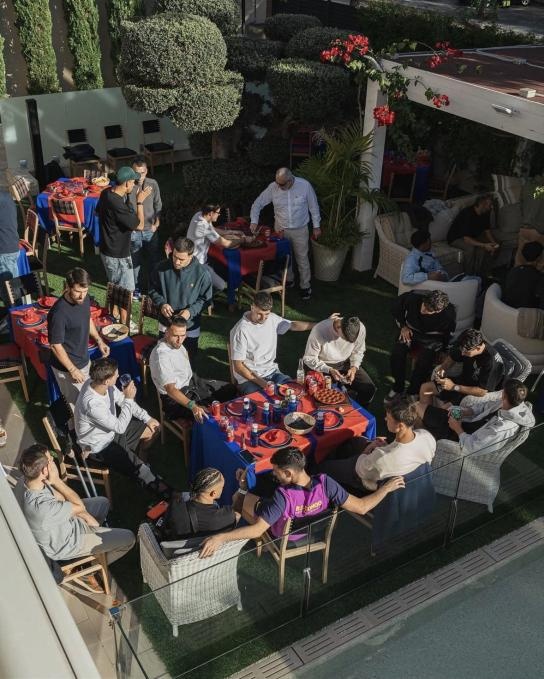 巴萨体育部门的亚历杭德罗-埃切瓦里亚和博扬也投入了此次聚餐。