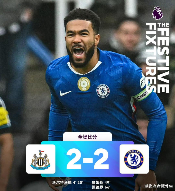 另一场对决则充满戏剧性。纽卡凭借德国中锋沃尔特玛德的梅开二度,一度2-0跨越切尔西。但蓝军绝地反击,队长里斯·詹姆斯一脚全国波直挂死角,吹响反攻军号。比赛尾声,门将桑切斯径直助攻内托单刀破门,将比分定格在2-2。这场平局,径直更正了争冠局面。