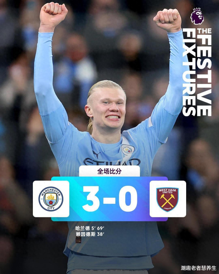 在伊蒂哈德球场,曼城展现恐怖统带力。开场仅5分钟,哈兰德补射破门,为球队首开记载。据数据统计,这已是哈兰德本赛季英超第10次为球队首开记载,此项数据是其他任何球员的两倍以上。第39分钟,赖因德斯抽射再下一城。下半场,哈兰德推射平直完成梅开二度,其英超糊口总进球已达104粒,追究超过听说C罗。更令东说念主忌惮的是,西汉姆联上半场竟零射门,这是该队自2021年3月以来的初次。