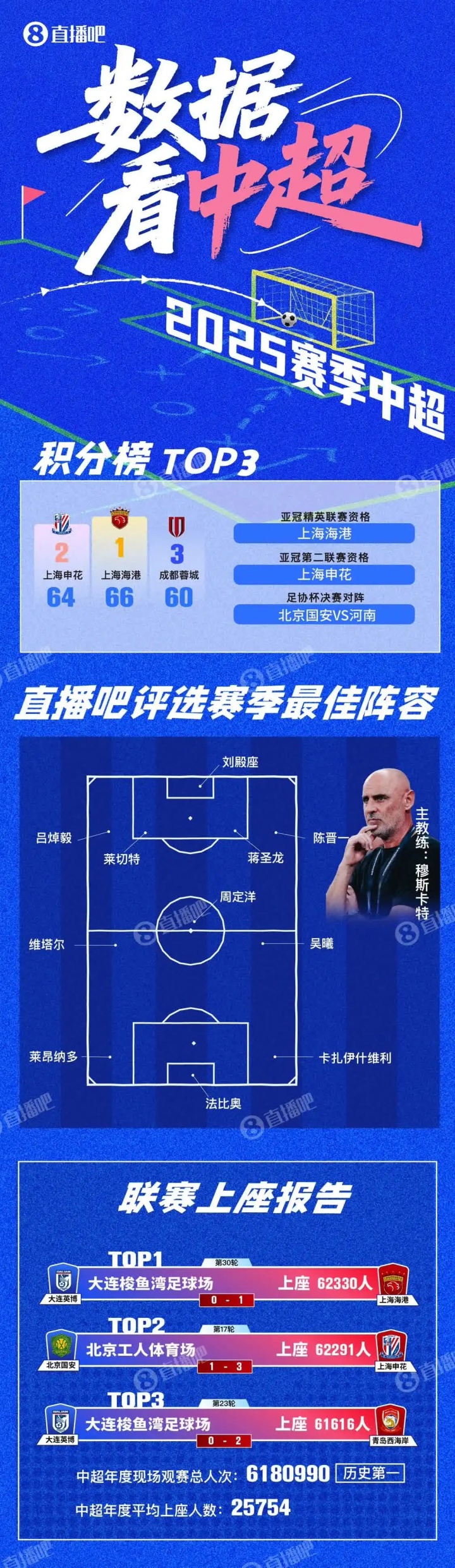 2025赛季中超联赛终局。一个创造了上座率历史记载的赛季事后,作念了一份数据追忆。这份追忆很非凡想,不妨作念一番解读。