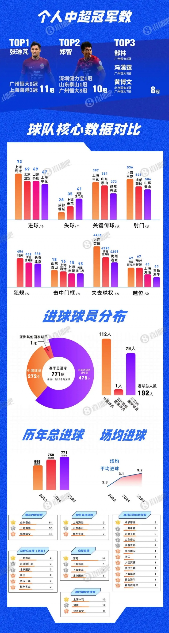 海港这波三连冠,张琳芃王人拿全了,这意味着他已经拿了11个联赛冠军,卓越郑智成为中超冠军数目最多的球员。改日很长一段技艺里,不可能有东说念主能刷新这个数据,除了下赛季的他我方。四肢发奋地、行状地、阻碍地踢球的中国球员的代表,这11个冠军数据是天说念酬勤最好的注解。要是当年恒大放张琳芃留洋了?莫得要是。还好张琳芃比绝大大宗中国球员王人幸福。