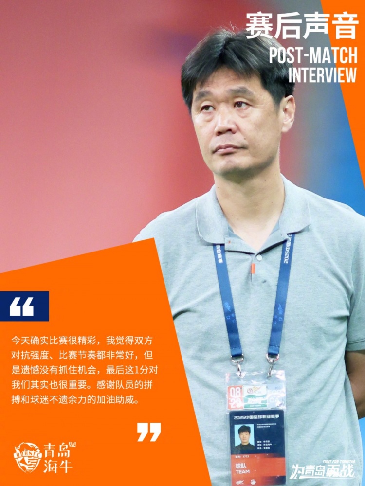 全场比赛甩手,青岛海牛1-1战平河南队