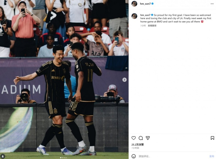 恣意球破门,孙兴慜社媒晒照:自重打进个东谈主好意思职联首粒进球!