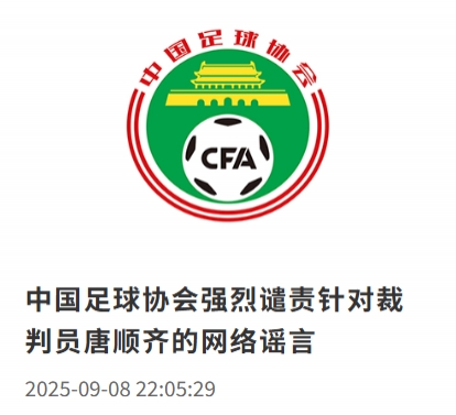 【中国足球协会热烈驳诘针对评判员唐顺皆的齐集流言】